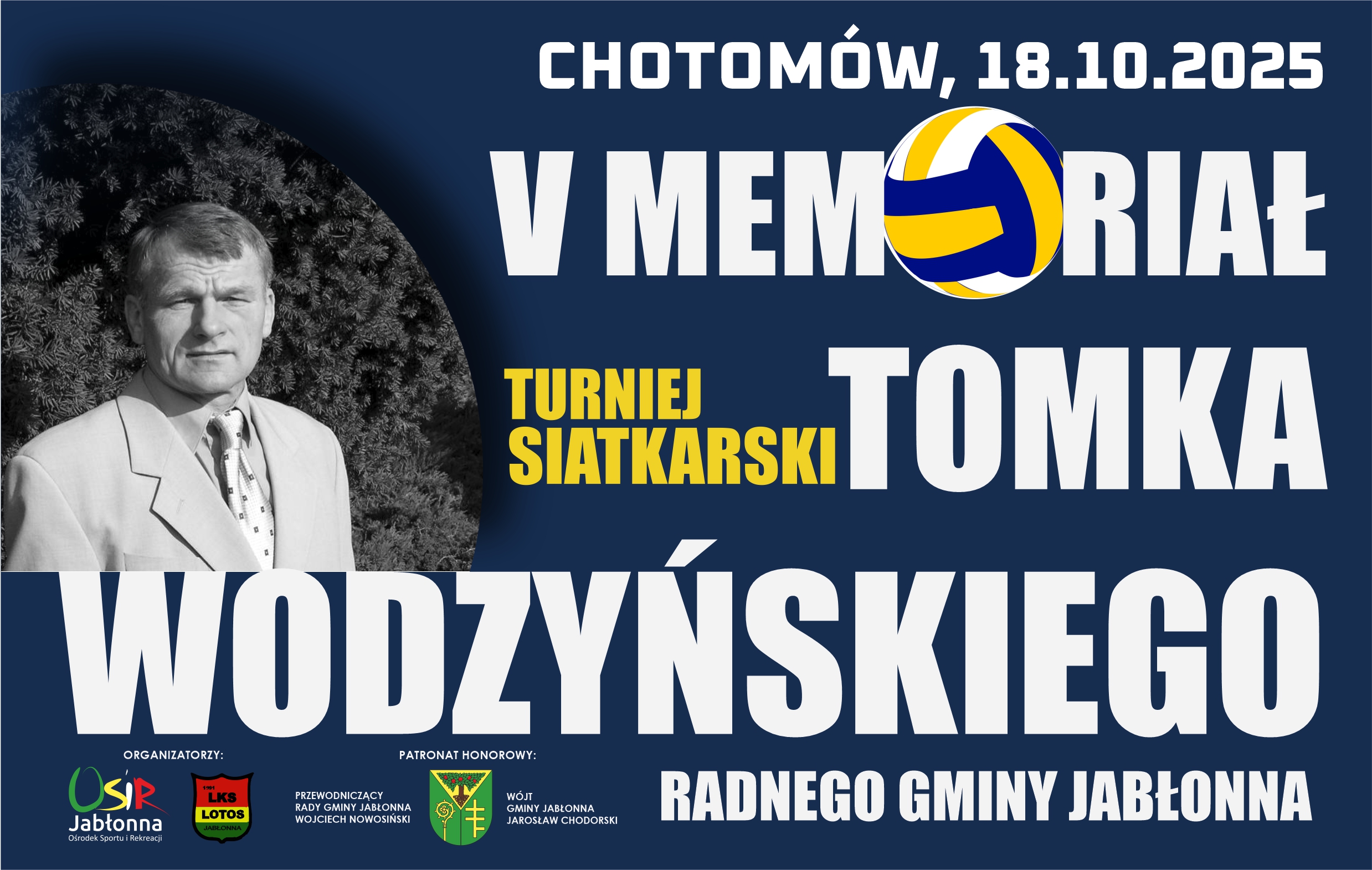Ośrodek Sportu i Rekreacji w Jabłonnie i LKS Lotos Jabłonna zapraszają na V MEMORIAŁ SIATKARSKI TOMKA WODZYŃSKIEGO- RADNEGO GMINY JABŁONNA