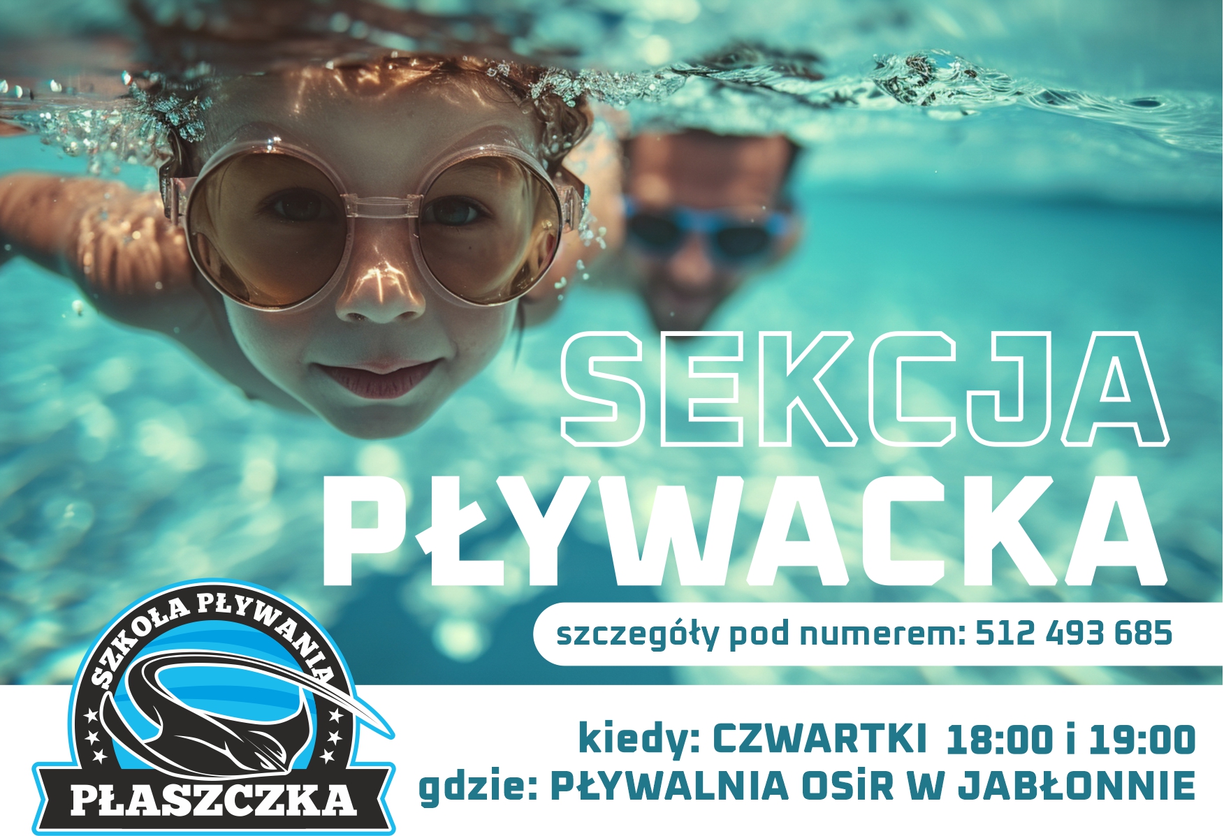 Czwartkowe treningi Sekcji Pływackiej prowadzone będą przez nowego operatora- Szkołę Pływania Płaszczka Kamil Kwiatkowski. Trwa nabór do sekcji- zapraszamy! Szczegóły na https://www.osirjablonna.pl/zajecia/sekcja-plywack... oraz pod numerem 512-493-685.